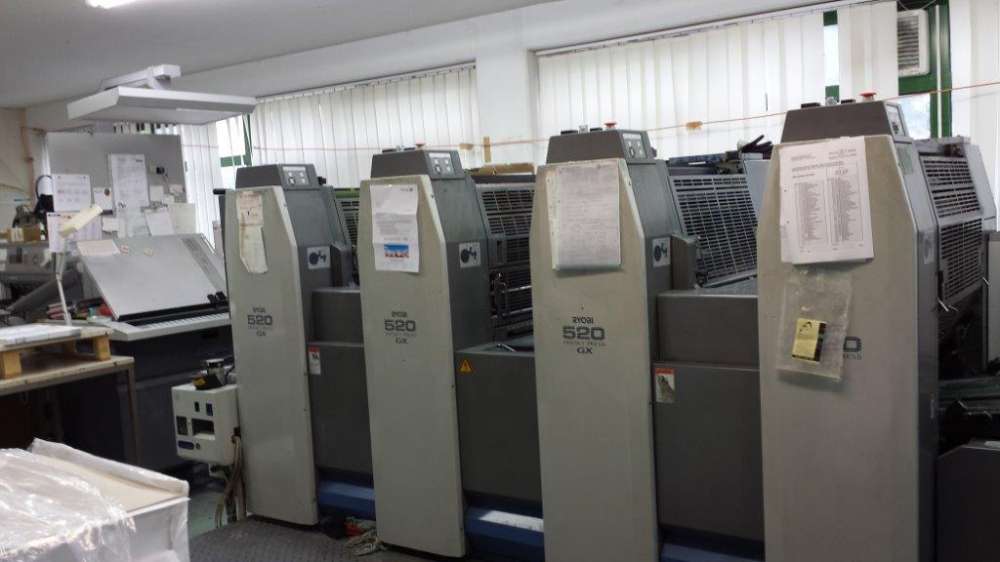 | Specifications 仕様 | 印刷枚数:約3300万枚 PCS-H, RYOBIMATIC dampening system, SAPC Semi-automatic plate change, Cooling unit, Automatic blanket and impression cylinder washing unit, Powder sprayer, Double-sheet control, Max. paper size: 365 x 520 mm, Smallest size: 100 x 150 mm, Image area: 350 x 505 mm, Speed: 11.000 sh/h |